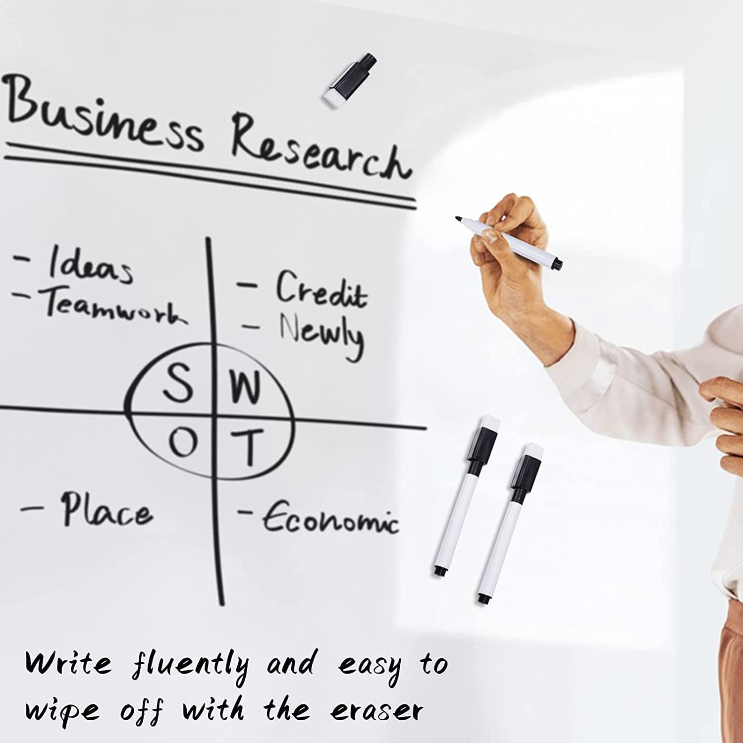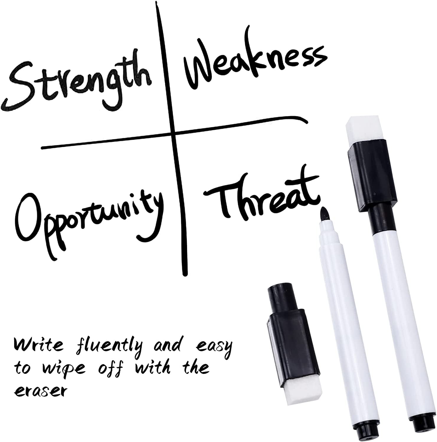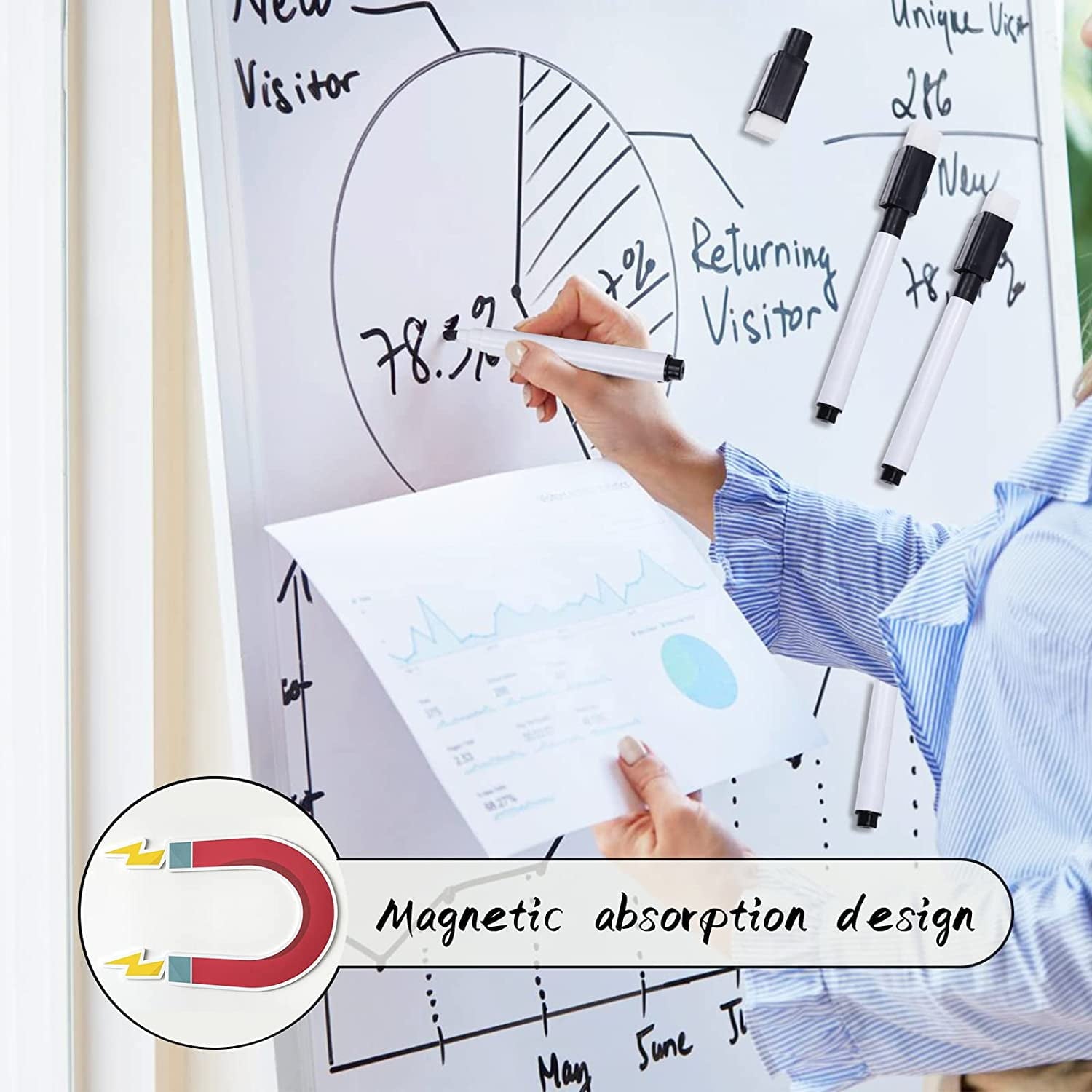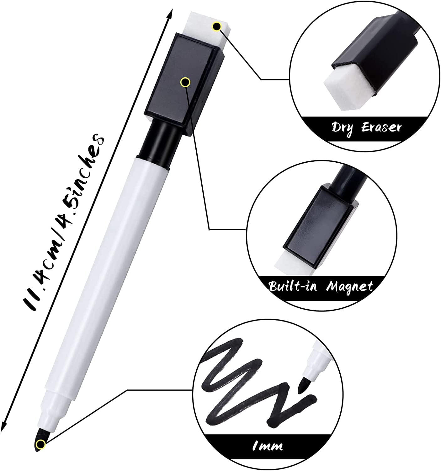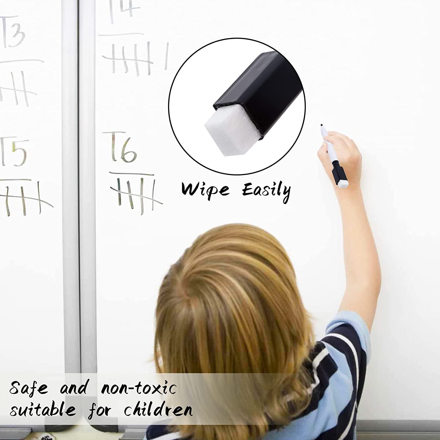 RETON 40PCS Dry Erase Markers with Eraser, Black Fine Tip Point Whiteboard Pens with Magnetic Cap and Eraser for Classroom Office School Tea