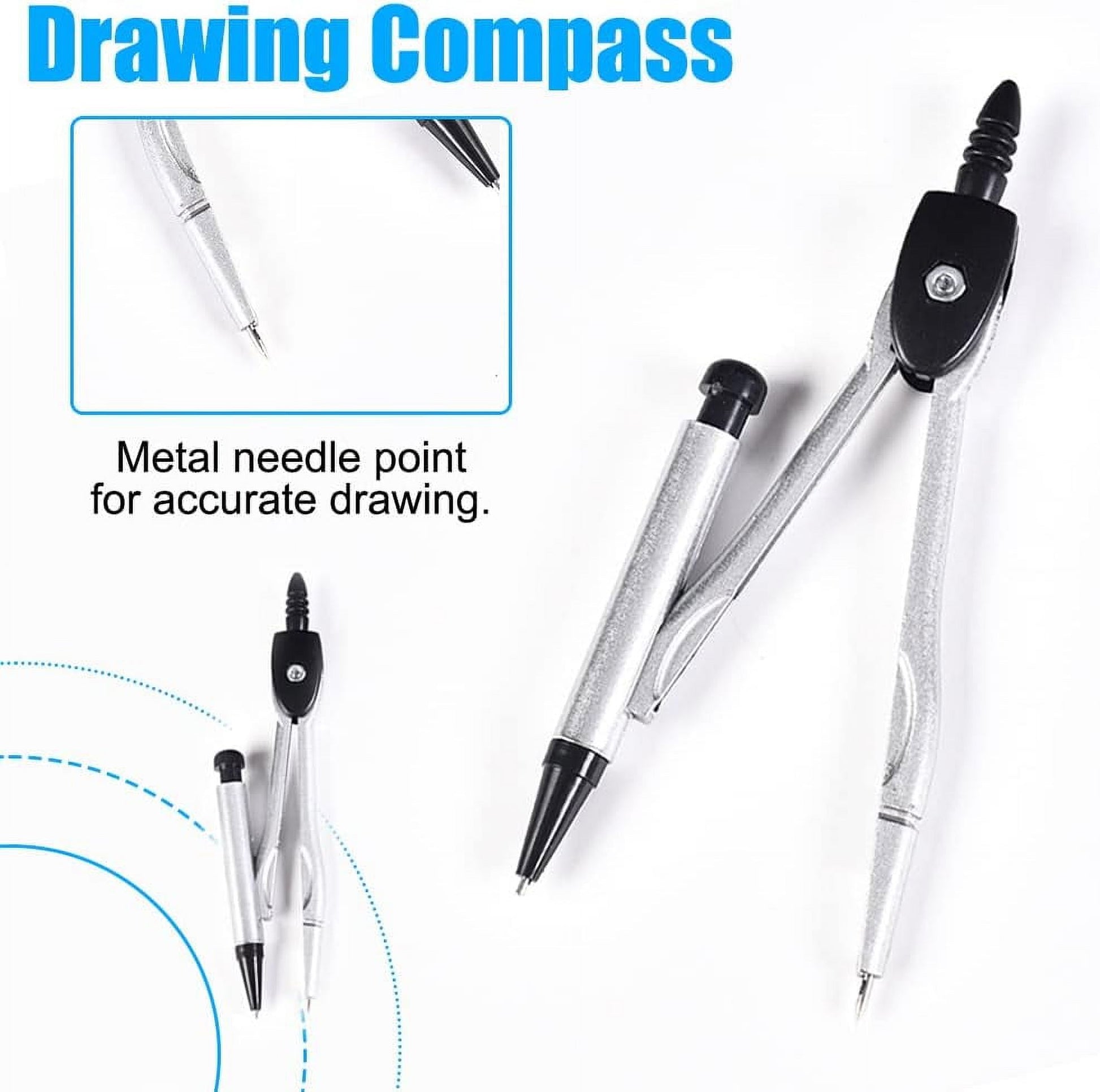 RETON Maths Set - Compass and Protractor Set Geometry Compass School Supplies Set - Drawing Compass Protractor Pencil Pencil Refill Eraser R